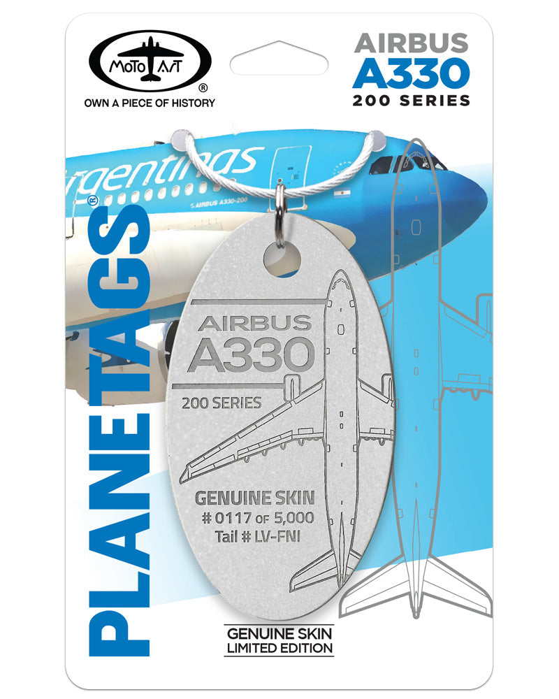 Aerolíneas Argentinas® 関連のエンブレムおよびロゴは、米国における登録商標または商標です。 MotoArt PlaneTags LLC は、それらと提携、関係、または後援されていません。